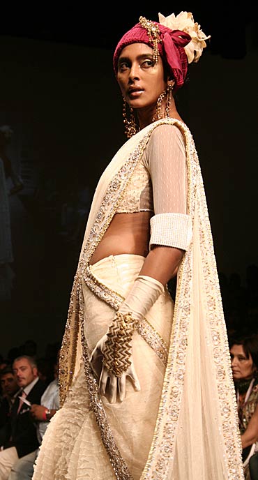 et and lace were brought together for this sari, in a very old-Bollywood style ensemble.