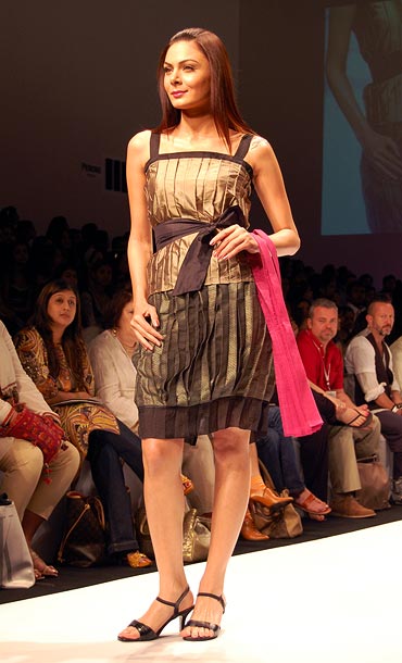 Titled 'The Fold', designer Geetika Gulia's line was made for travelling! All the perma-pleated outfits and accessories folded up to the size of a single pleat and could fit into a wallet.