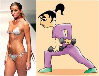 You will need a pair of 3-kilo dumbbells for this exercise -- it works the larger back muscles, back of the shoulder and biceps.