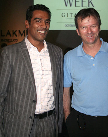 The suave Steve Waugh was spotted at the Lakme Fashion Week in Mumbai with Ravi Krishnan, Vice Chairman of the Indian Premier League (IPL) Jaipur franchise.