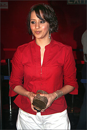 Ishita Arun, model and daughter of singer Ila Arun, took the casual route as well with this red shirt over a beige skirt -- very safe and quite boring, we say.