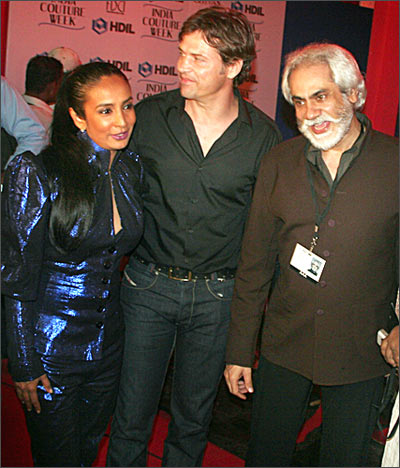 Another near permanent fixture at fashion shows, Suchitra Pillai, showed up in this bizarre, electric blue outfit. Make of it what you will!