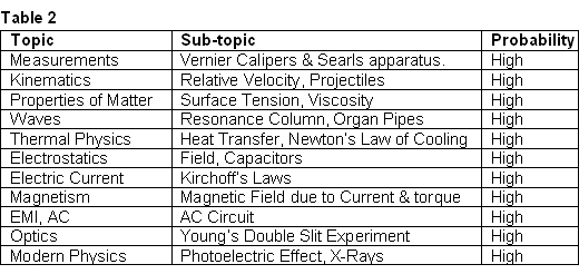 Pattern for the JEE 2009 is expected to be similar to that in 2008. However, following may be the marks-wise breakup for topics (Table 1):
