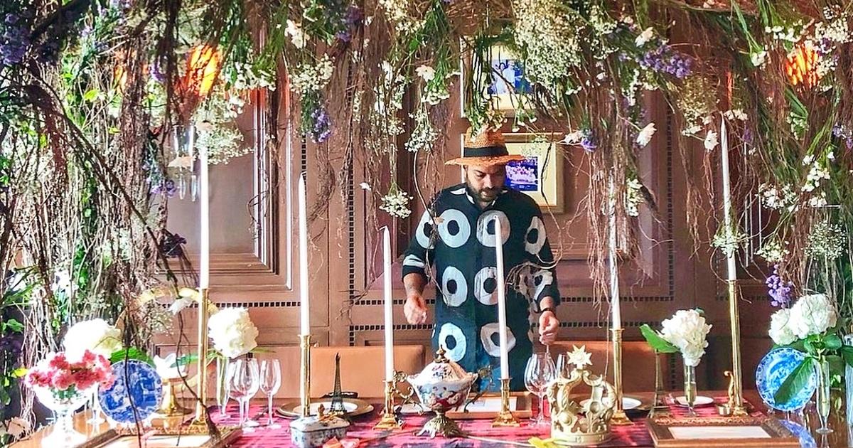 He hires people with a background in architecture to enhance the experience through dramatic elements like tablecloths with peacock feathers handwoven on them and Mughal-era inspired serveware.