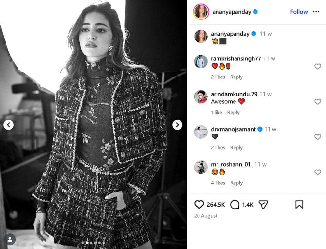 IMAGE: Ananya Panday’s tweed skirt set layered over a turtleneck is equal parts cosy and coquette. Photograph: Kind courtesy Ananya Panday/Instagram