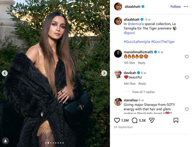 IMAGE: Add Alia Bhatt’s Milan look to your winter style moodboard -- a slip dress, trench coat and fishnet stockings that are luxury and sass all at once. Photograph: Kind courtesy Alia Bhatt/Instagram