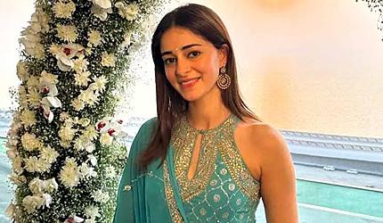 IMAGE: Ananya Panday ditched the new for nostalgia, rocking mom Bhavana’s 21-year-old aqua blue suit, designed by the late Rohit Bal, for her cousin’s wedding. Photograph: Kind courtesy Ananya Panday/Instagram