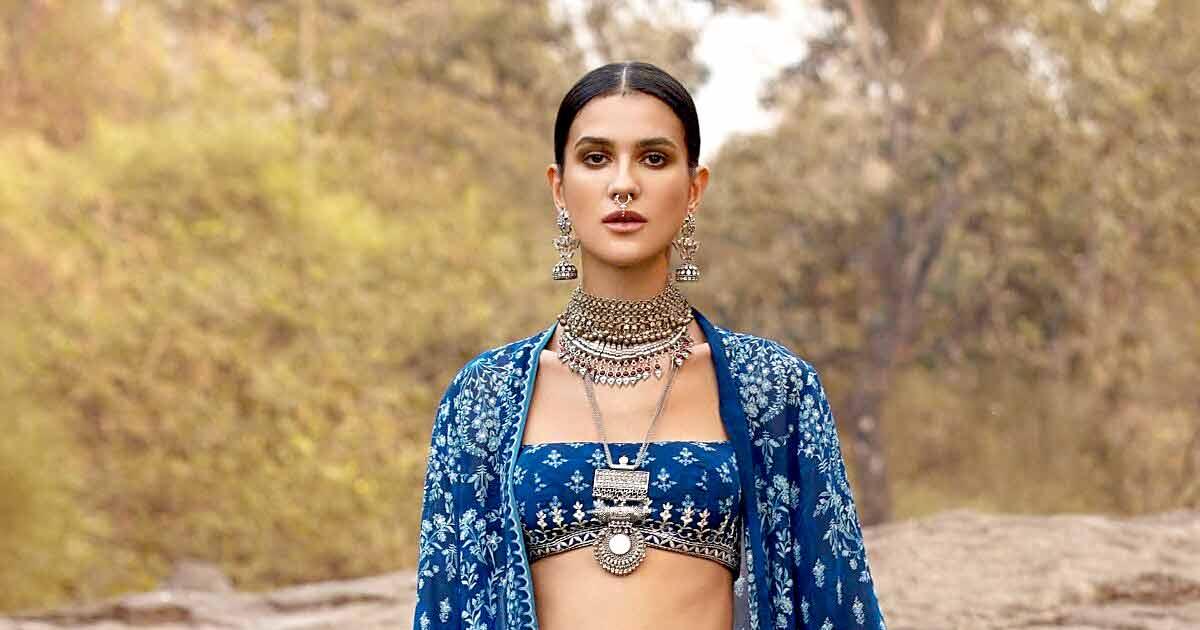But this lehenga ensemble, which takes its cue from the architecture of Sindh, will make the gaudy colours of all the other outfits at garba get-togethers feel ashamed.