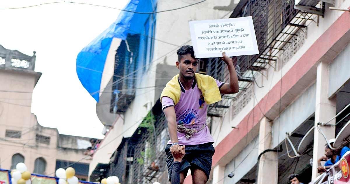 Dahi Handi, part of the Janmashtami festival that marks the birth of Lord Krishna, saw enthusiastic visually impaired participants in Mumbai.