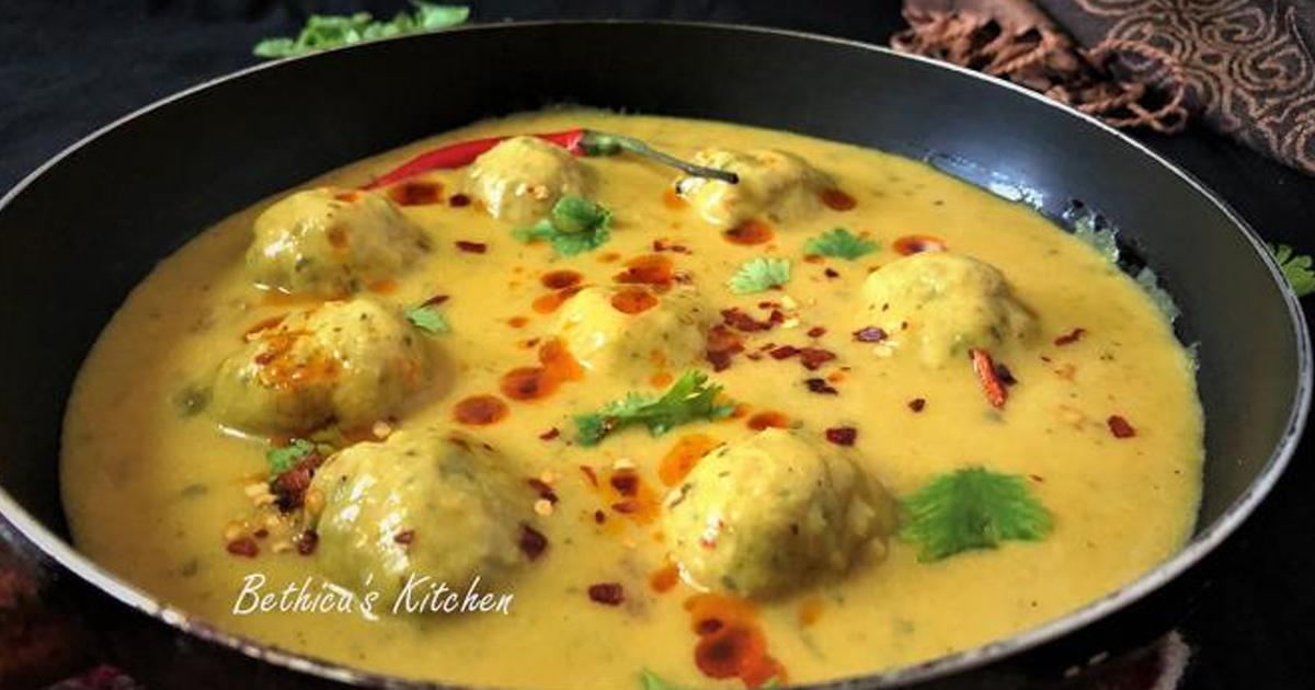 Bethica chooses to simmer spiced chicken balls in a tangy curd-and-besan gravy, tempered with mustard seeds and fenugreek and it turns out rather special. She suggests vegetarian or vegan variations using paneer or vegetables.