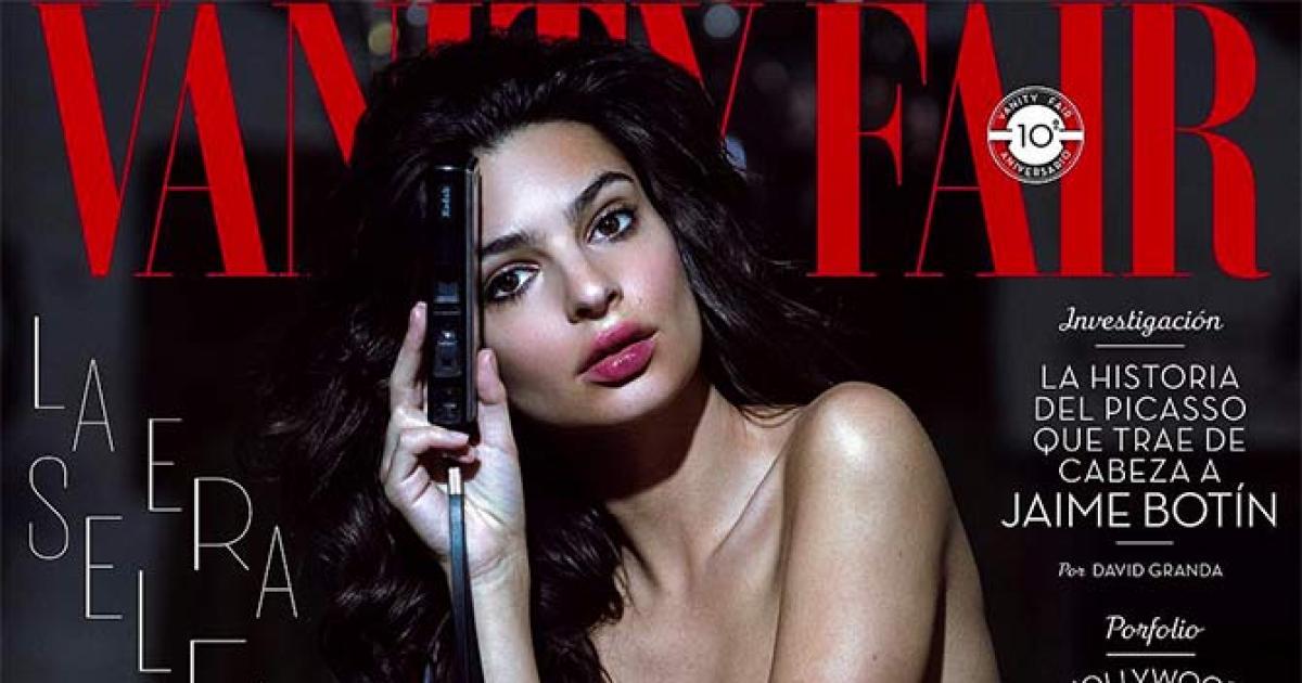 Emily Ratajkowski dared to bare as she posed topless on the cover of Vanity Fair Spain's March edition.