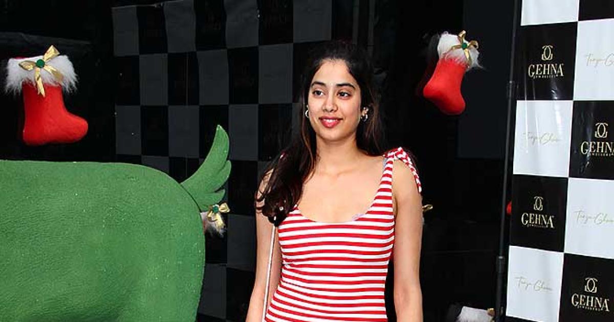 Janhvi aced the no makeup look in a red and white striped bodycon flaunting her fab frame.