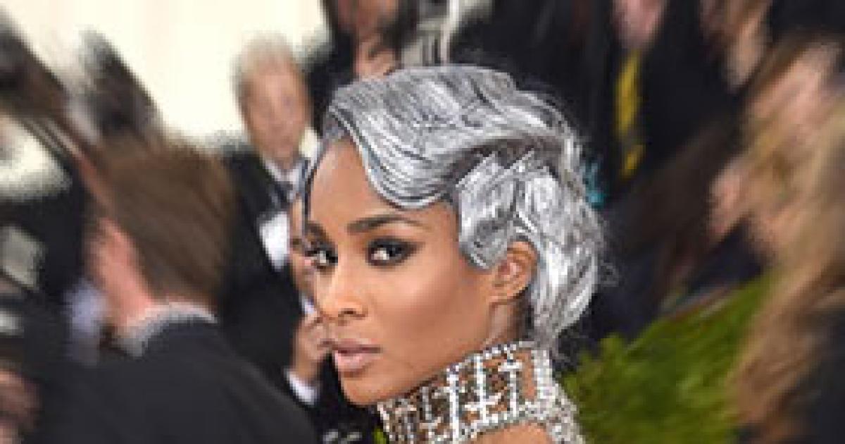IMAGE: Ciara sported a back baring silver grey creation and even matched her hair colour while Solange Knowles looked dramatic in a yellow outfit by David LaPort. Who looked fancier? Photograph: Dimitrios Kambouris/Getty Images
