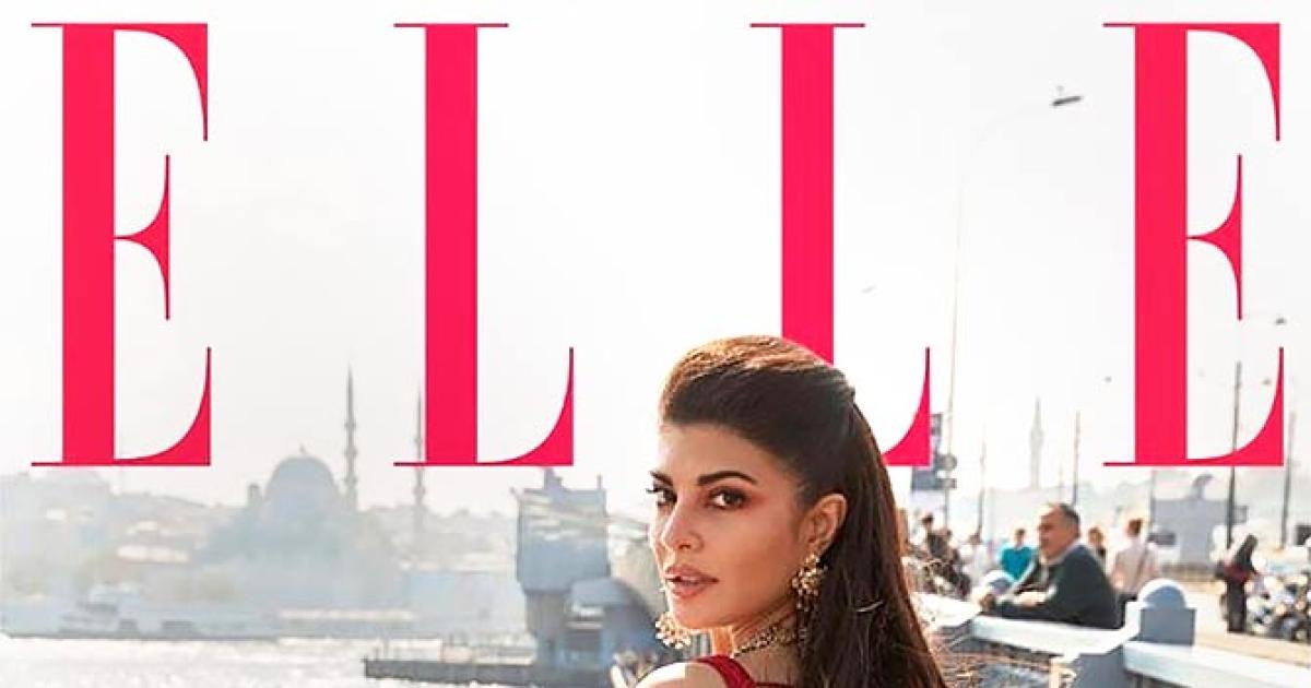 Jacqueline Fernandez looked like a gorgeous goddess in red on the cover of Elle.