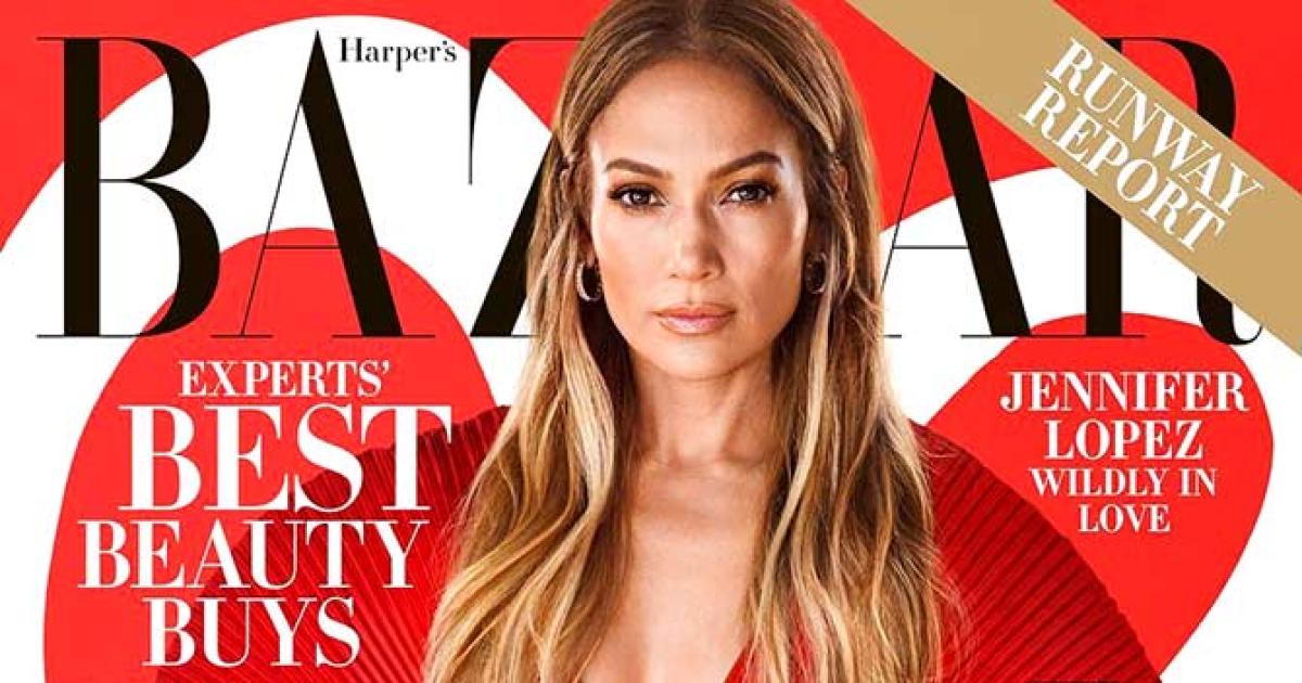 Harper's Bazaar USA's February cover girl, Jennifer Lopez stuns in a red ruffled Gucci number.