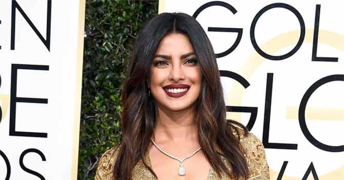 Priyanka Chopra wore a golden hand embroidered Ralph Lauren gown at the Golden Globes in 2017. Photograph: Frazer Harrison/Getty Images