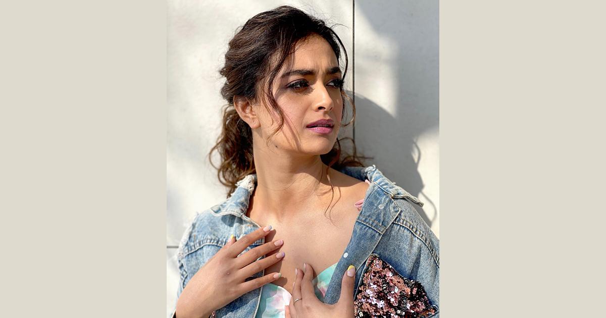 IMAGE: Keerthy layers her tie-dye print tee what would have been just another denim jacket if it did not have those dramatic sequinned pockets. A playful manicure and her signature wavy hair say hello to her free-spirited nature.