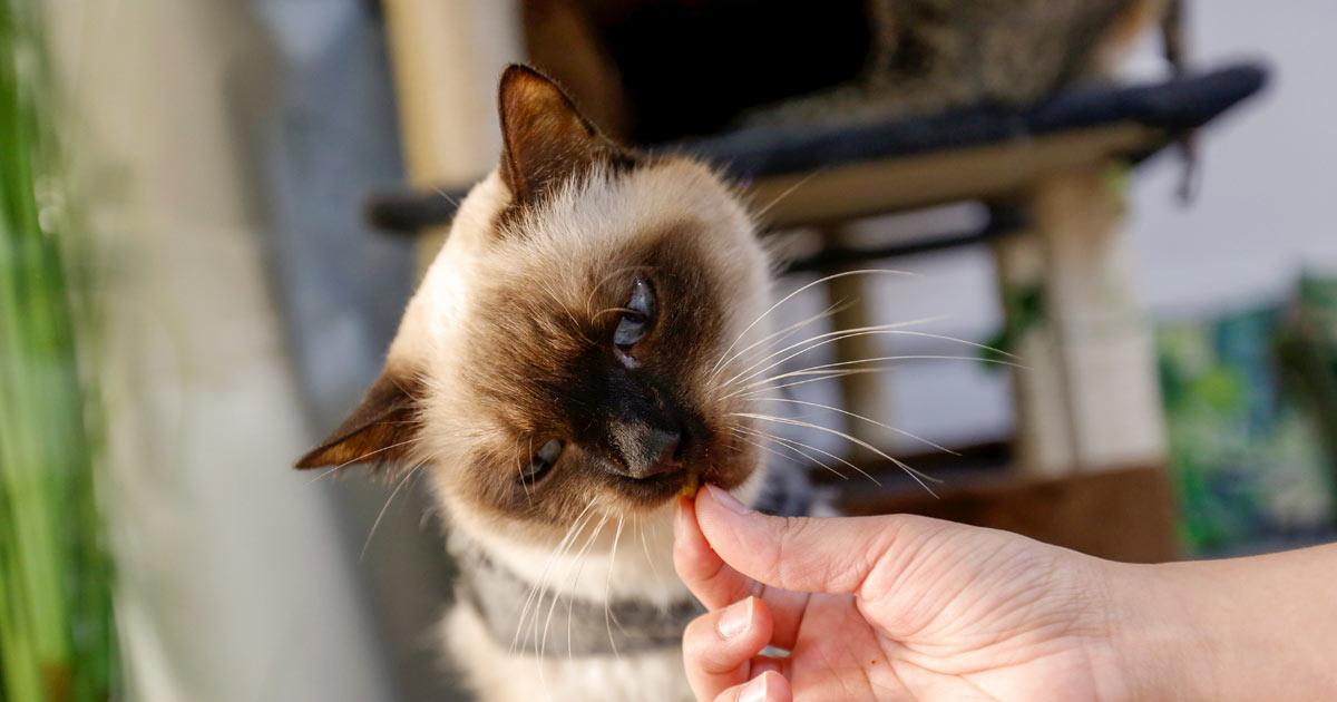 IMAGE: A staff member feeds a cat at the cafe which promises patrons a purrfect day out.