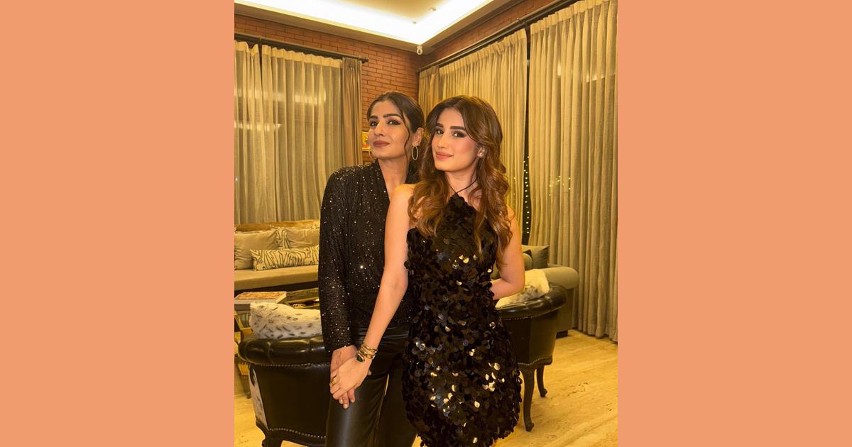 IMAGE: Mother-daughter duo Raveena Tandon and Rasha Thadani are ready to party in bling-bling black. All Photographs: Kind courtesy Rasha Thadani/Instagram