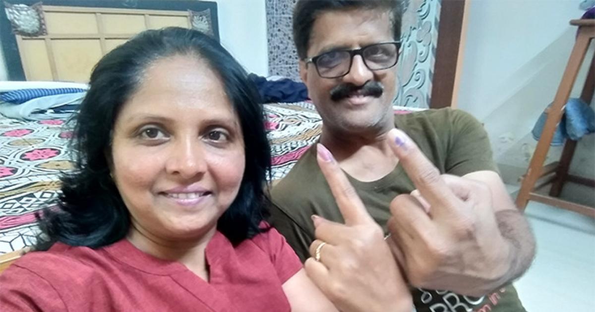Parag Palkar, 46, from Chinchwad was the first voter to reach his polling booth.
