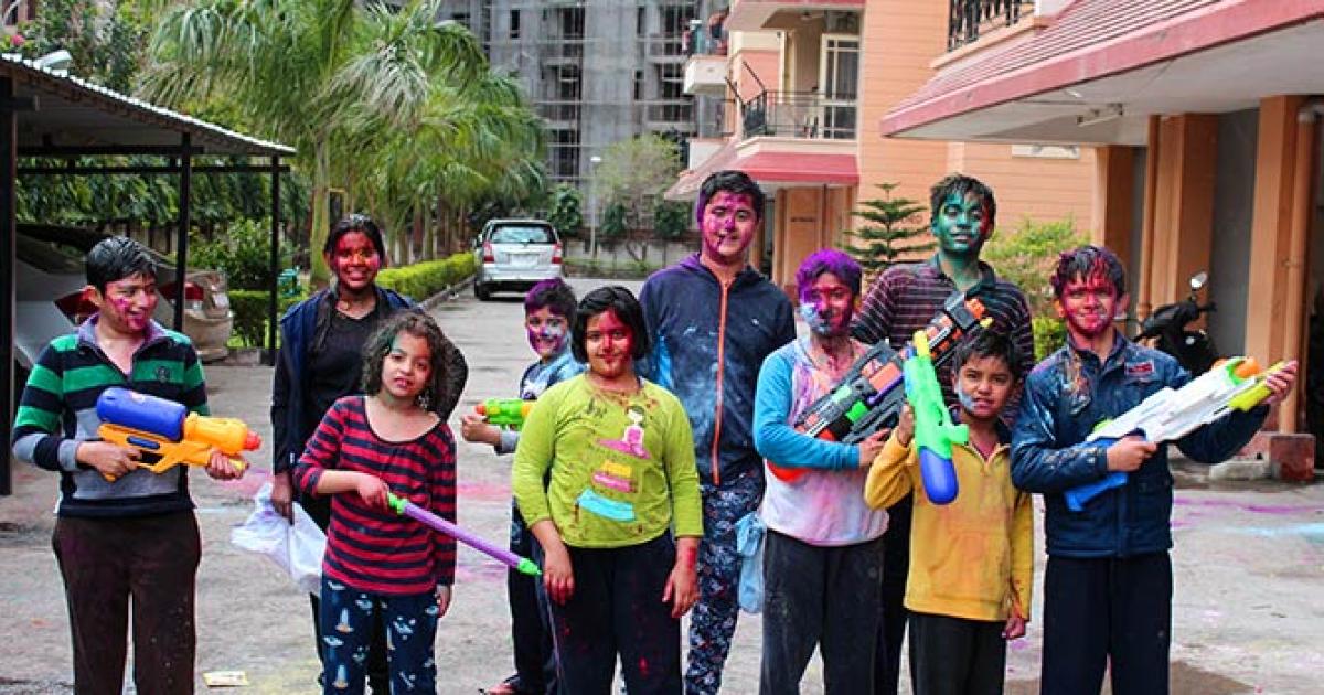 IMAGE: Namisha clicked this picture of kids smeared in colours of Holi and posing with their fancy pichkaris in a housing society in Panchkula, Haryana.