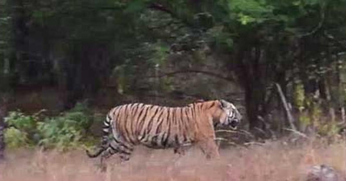 The moment he saw us, Chota Bheem (like most tigers) immediately turned left and walked away into the thicker vegetation.