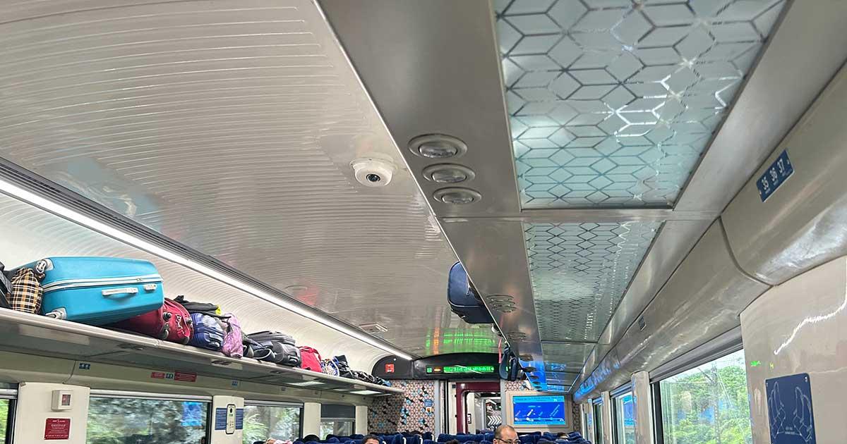 Obviously, this is not a train for the regular commuter, evident from the number of large sized bags in the overhead bin.
