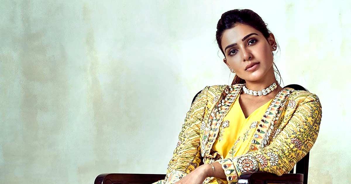 IMAGE: For the pre-wedding celebrations, Samantha chose a yellow embroidered outfit from Arpita Mehta.