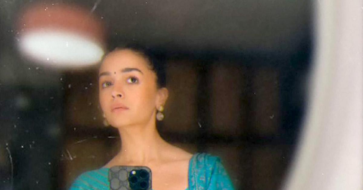 Alia Bhatt chose to wear a lovely blue sari for the pran pratishtha ceremony at the Ram temple in Ayodhya on Monday, January 22, 2024.