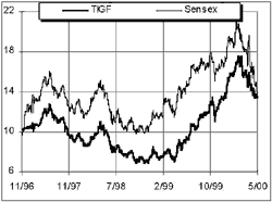 Templeton India Growth FundDhirendra Kumar Templeton India Growth Fund (TIGF) invests primarily in equities of high capitalised, out-of-favour "value" stocks. The fund declared its only dividend of 15 per cent in February 2000. Entry into the fund carries a maximum load of 2 per cent depending on the amount of investment. Exits within 12 months also have a similar load structure.