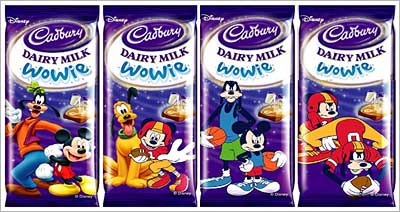 New launches Known as: Cadbury Dairy Milk Wowie Launched by: Cadbury Available at: Retail outlets Price: Rs 10 Per pack of 22 gm Details: A chocolate delight with fun Disney characters -- Mickey, Pluto, Goofy & Donald.