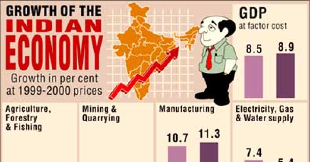 Indian economy registered this decade's highest first quarter growth during the current financial year at 8.9 per cent on impressive showing by manufacturing and services sectors.