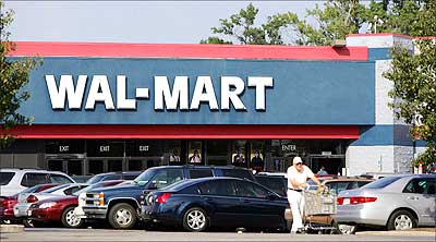 A customer leaving a Wal-Mart store in Clinton, Maryland. Photograph: Tim Sloan/AFP/Getty Images.