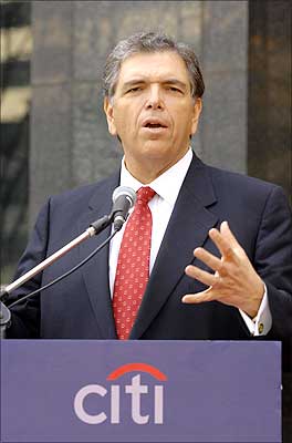 Charles Prince, chief executive and chairman of Citigroup, during an unveiling ceremony for the group's new logo in Seoul. Photograph: Jung Yeon-Je/AFP/Getty Images