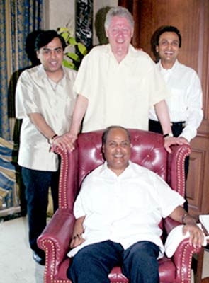 Dhirubhai Ambani along with the then US President Bill CLinton. Dhirubhai is flanked by his sons Mukesh and Anil.
