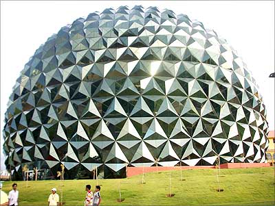 The four-screen multiplex at the Infosys Mysore Development Centre. Shaped like a massive golf ball, it is perhaps the most photographed structure on the sprawling Infosys campus.