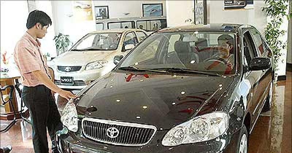 Image: Customers inspect a locally assembled Toyota's Altis at a showroom in Hanoi.