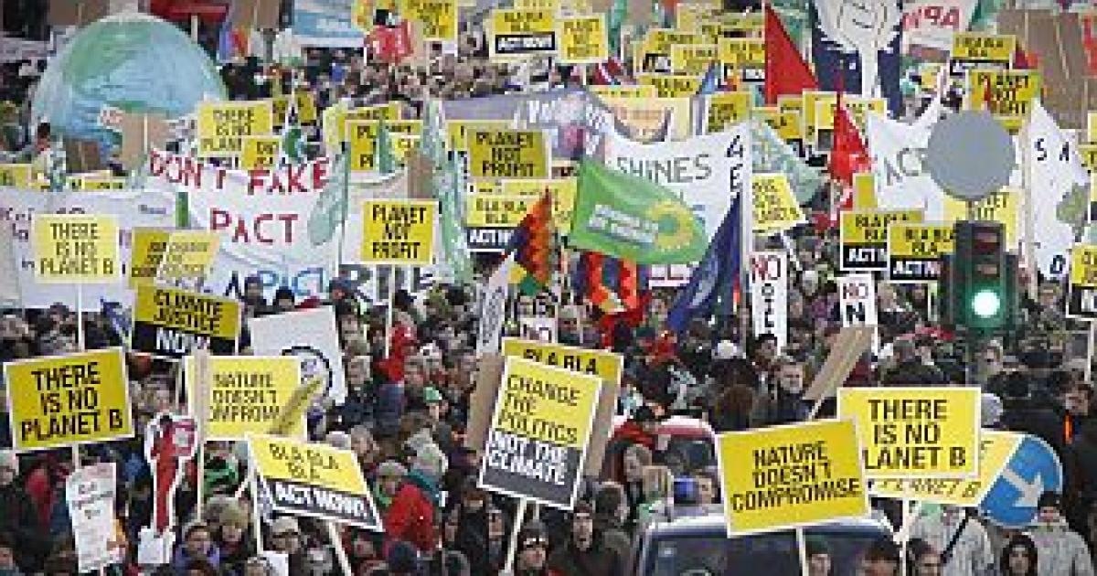 Image: Demonstrators hold signboards as they march to the UN Climate Change Conference 2009 in Copenhagen