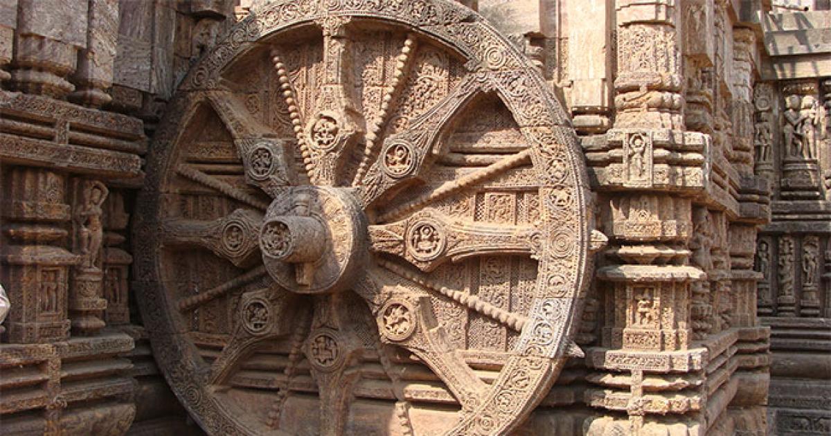 Image: Wheel of the chariot at Sun Temple, Konark, Bhubaneswar. Photograph: PTI Photo