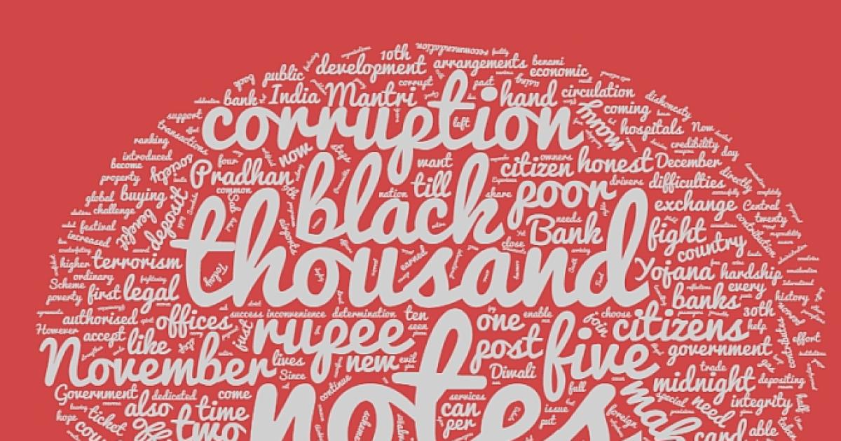 IMAGE: A word-cloud analysis of the prime minister's address to the nation on March 8, 2016, banning Rs 500 and Rs 1000 notes.