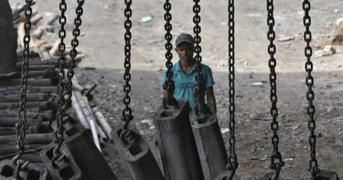 Image: A worker prepares to unload steel bricks at a steel factory on the outskirts of Jammu.