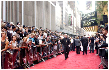 They waited hours for a glimpse of Tom Cruise and his Minority Report costars -- fans to the left of the red carpet, media to the right. Check out the guy in the sleeveless T to the extreme left of the picture. Puerto Rican native Fabian said something to Sex And The City star Kristin Davis -- who promptly trotted up and gave him a smooch. He then said something to Vanilla Sky star and Cruise's girlfriend Penelope Cruz --- who immediately held out her hand for him to kiss. What's he got, we wondered. "Instinct, man, pure instinct!" Fabian shrugged. Whatever -- he is sitting on a fortune, if he can figure out a way to mass-market his technique. Back | Back to Start Tell us what you think of this slide show