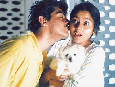 But it was with Aasai -- produced by Maniratnam and directed by Vasanth - where Ajith made his mark. Romancing a rather reluctant Suvalakshmi (who debuted in the film), Ajith wasn't just on a bid to win her love but also save her life from a maniacal brother-in-law, chillingly essayed by Prakashraj. Not surprisingly, he was branded as Aasai Nayagan (King of Love) by his jubilant fans. A glitzy hero had emerged.