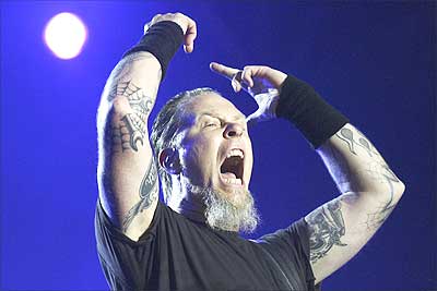 Image: James Hetfield, Metallica's lead singer, in concert in Imola, Italy. Photograph: Giuseppe Cacace/Getty Images