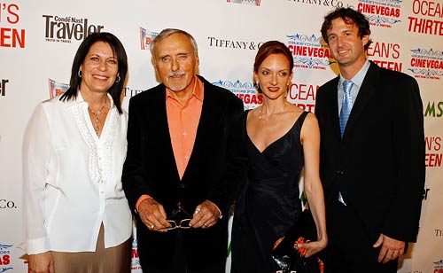 Robin Greenspun, CineVegas chairman of the creative advisory board Dennis Hopper, his wife Victoria Duffy, and CineVegas artistic director Trevor Groth arrive at the premiere of Ocean's Thirteen.