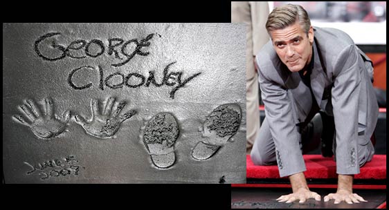 George Clooney's name, hand and footprints are immortalised in cement in the famed forecourt of Grauman's Chinese Theatre.