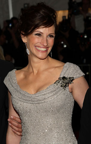 Julia Roberts (in the picture) and George Clooney served as co-hosts to Vogue chieftain Anna Wintour at the glittering event on Monday night.