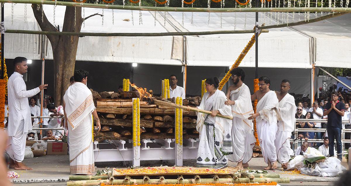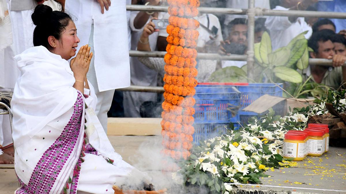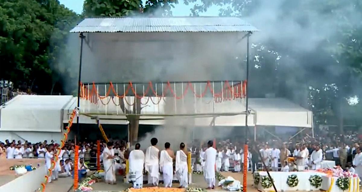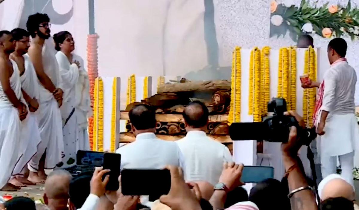 IMAGE: Zubeen's sister Palmi Borthakur, with close family members, performed the final rites. Photograph: ANI Photo