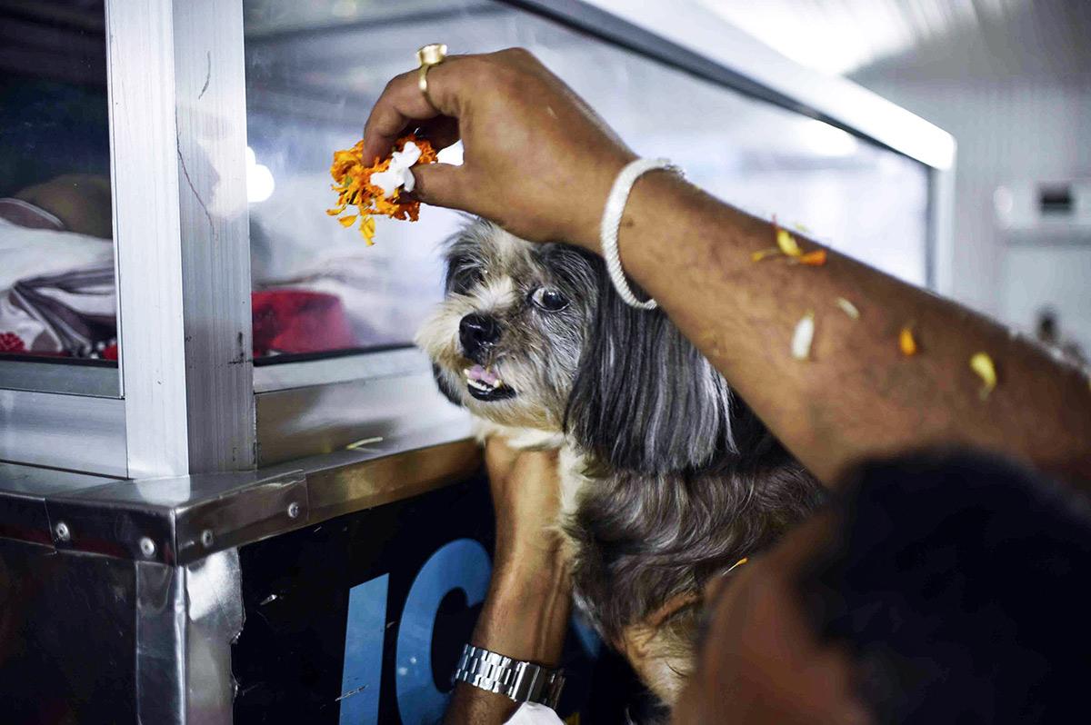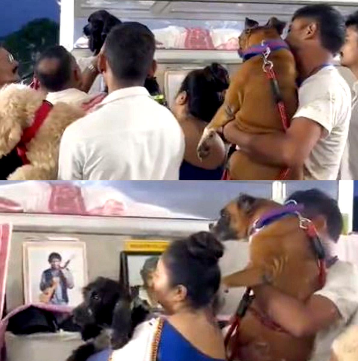 IMAGE: Zubeen Garg's pets were brought near his coffin before the funeral, here and below. Photograph: ANI Photo