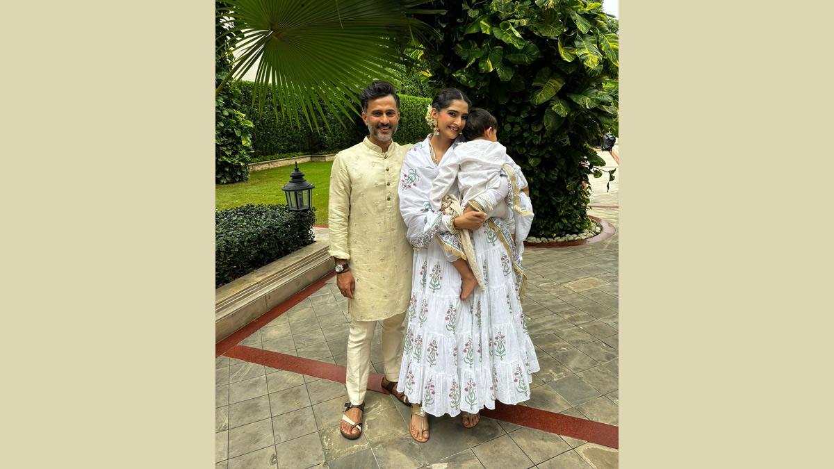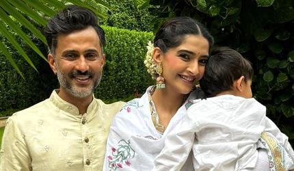 IMAGE: Anand Ahuja, Sonam Kapoor and their son Vayu. Photograph: Kind courtesy Sonam Kapoor/Instagram